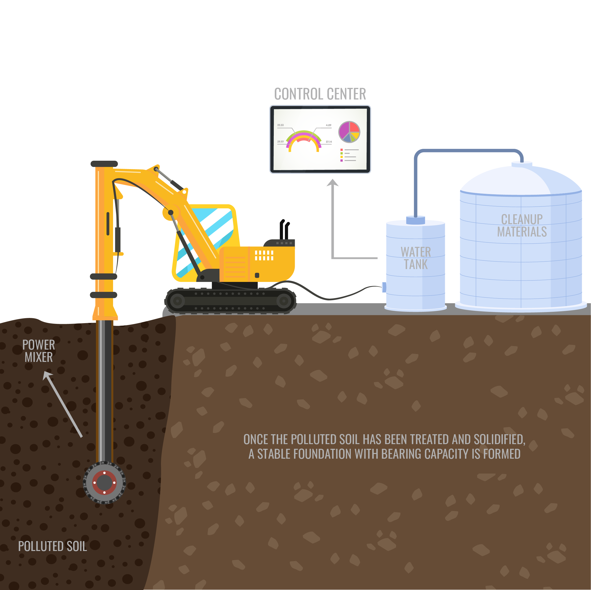 Through the use of stabilization and solidification technologies, contaminants are chemically immobilized, reducing their mobility and leachability. This method is particularly effective for heavy metals, hydrocarbons, and industrial waste residues. Solidification physically locks pollutants into a solid, stable mass, while stabilization chemically bonds contaminants to the soil matrix or converts them into less soluble forms. This process can be done in situ (in place) or ex situ (after excavation), making the treated soil safer to handle and potentially reusable.